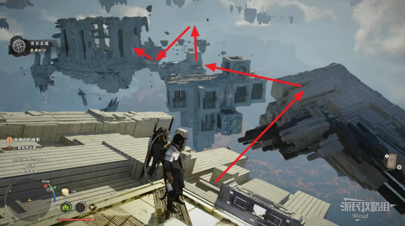 Betritt die Abgründe. Die Umgebung verwandelt sich in eine andere Leere, gefüllt mit schwebenden Plattformen und kristallinen Strukturen.