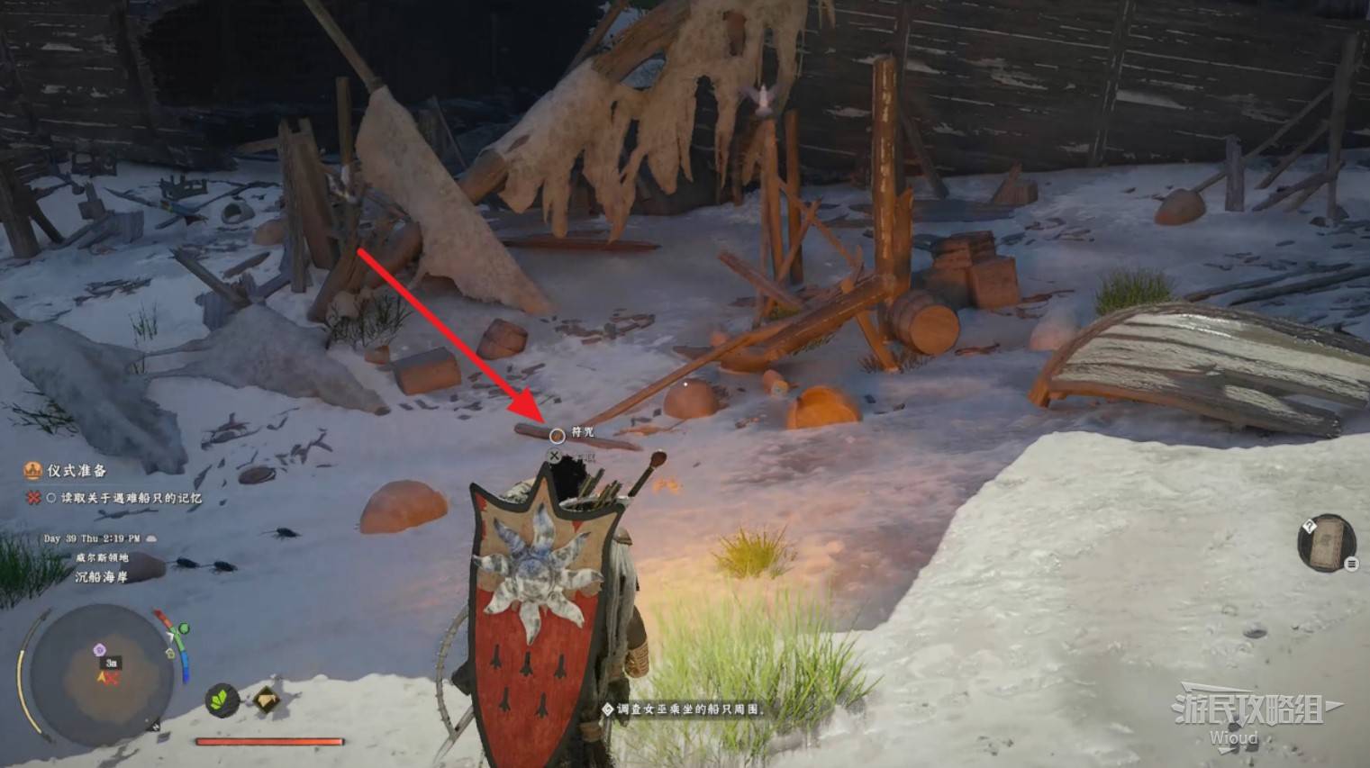 - Talisman β Look for the purple marker on the minimap within the yellow circle area. It's at a mast wreckage on the beach.