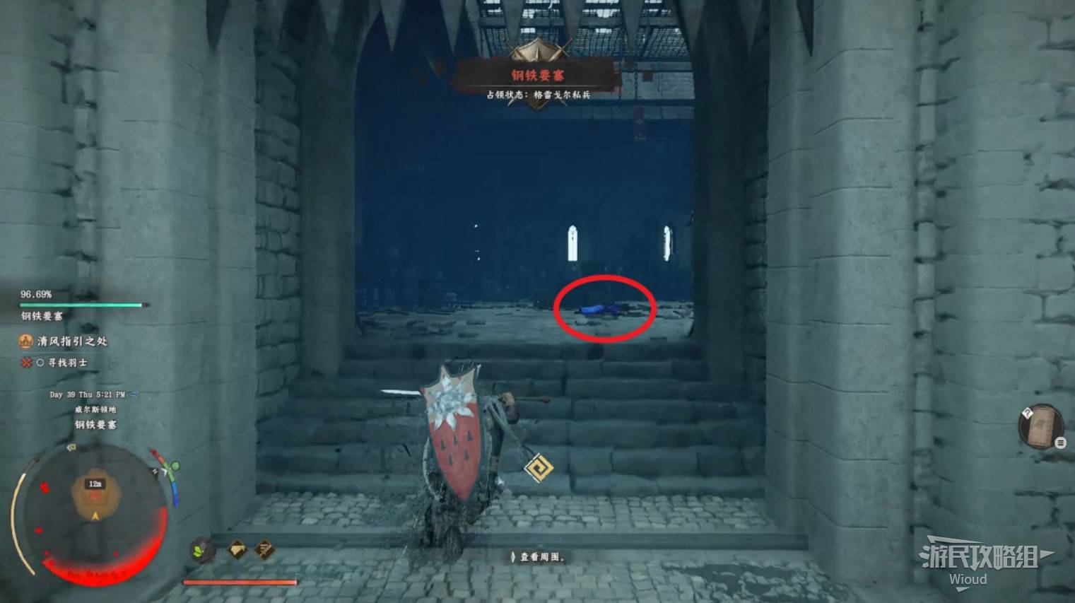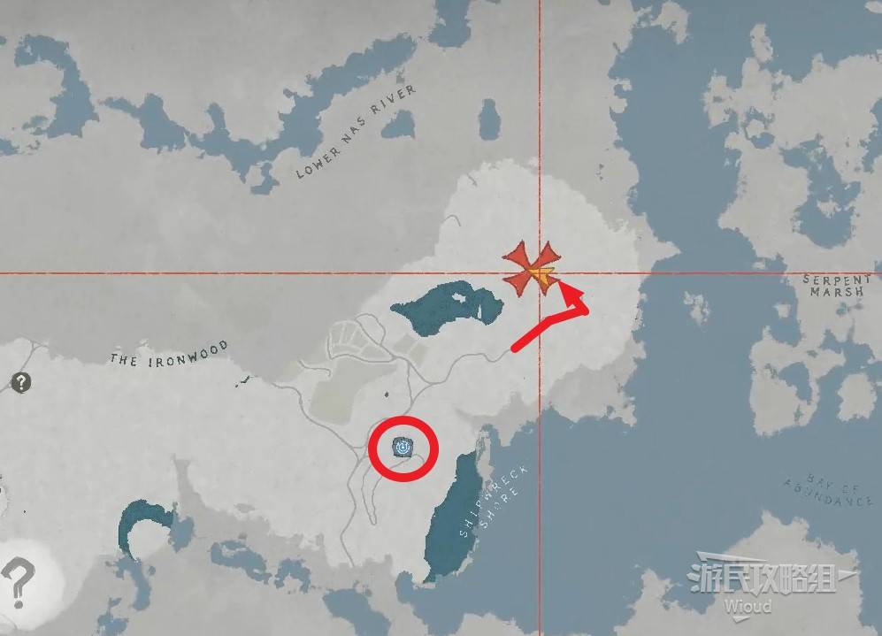 Tip: There's a fast travel point at the red circle location β activate it along the way.