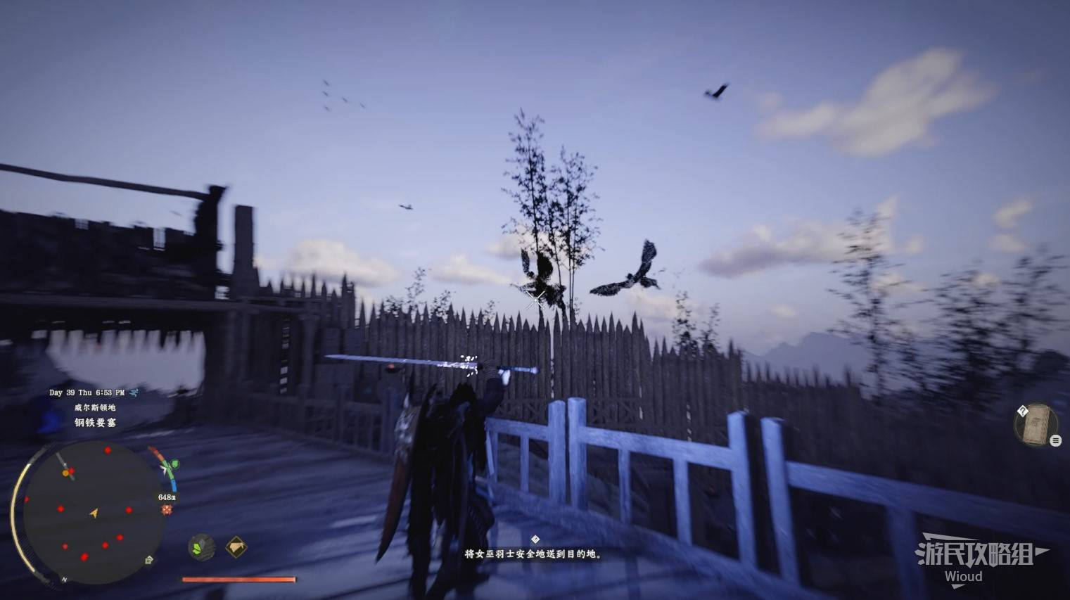 After the fight, speak with the sister outside the castle and escort her back (she rides on the back of your horse). Along the way, shoot down Harpies in the sky using Radiant Reflection β Shadow Harpy mode.