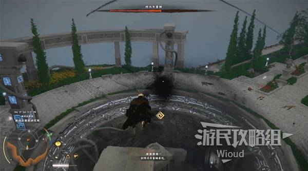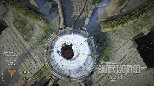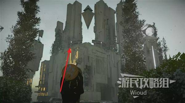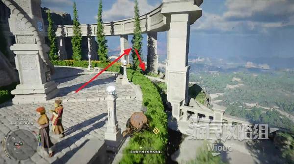 At the top, activate the marker at the entrance, then jump to the opposite platform and climb to the peak.