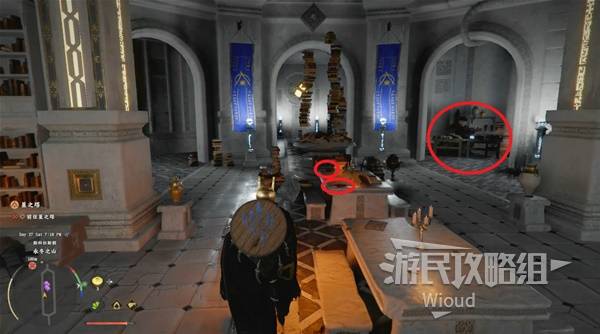 Inside, find "Story of the Knowledge Helmet" and "Star Constellation Research Journal" on the desk. The Contribution Shop is on the right side.