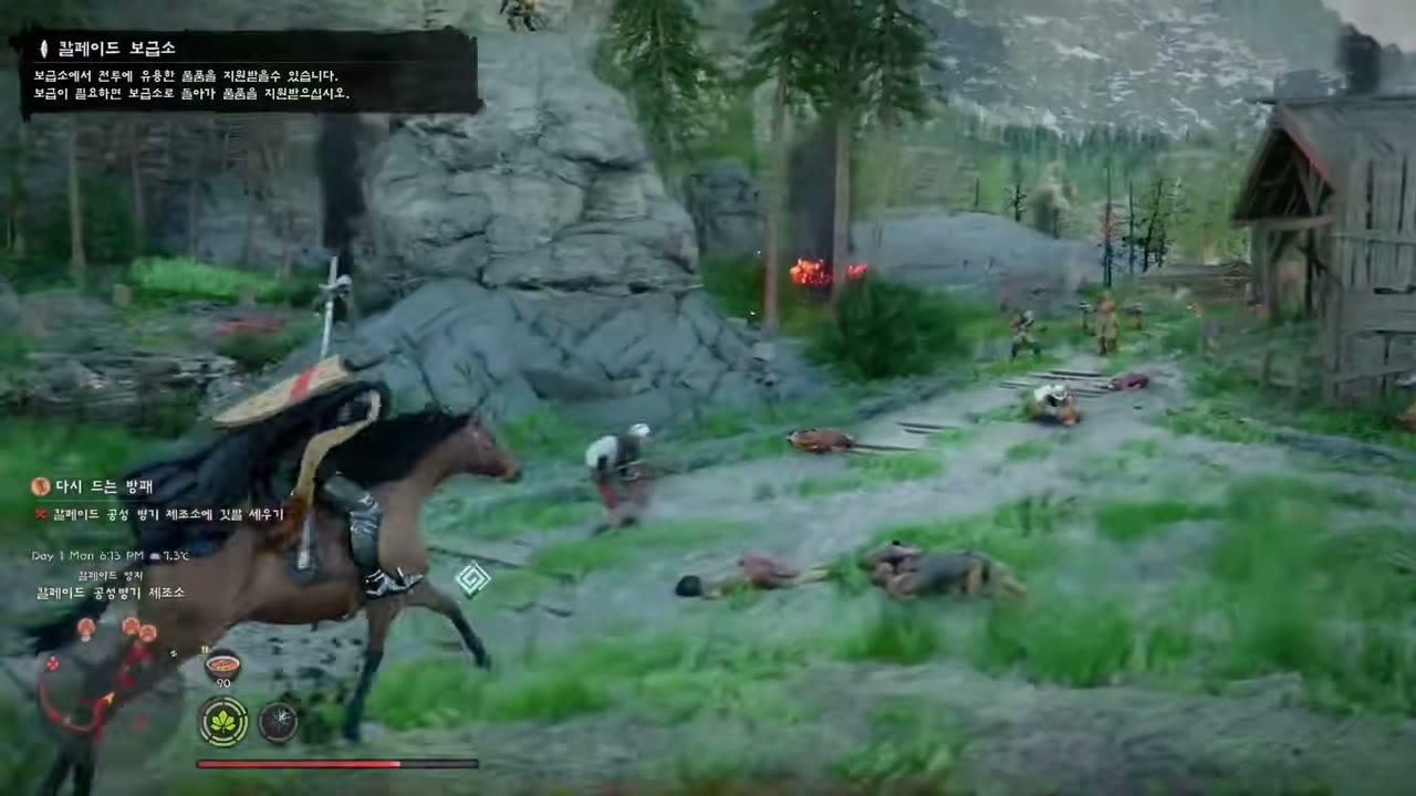 The horse's only active attack is Back Kick. All other mounted damage comes from the rider's weapons (sword, bow, spear, etc.). Mounted archery is especially effective β you can kite enemies in circles.
