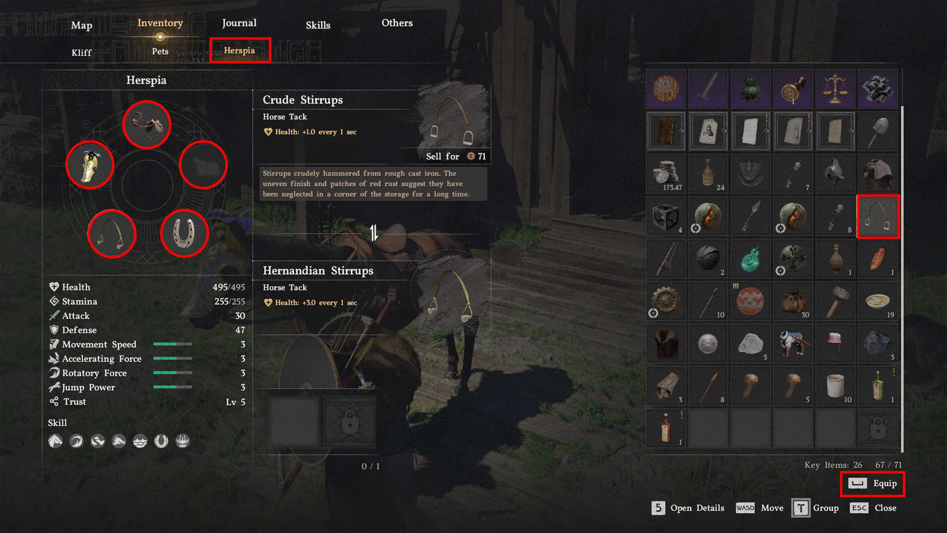 | Horse equipment tab | R (in inventory) | R1/R2 | RT |