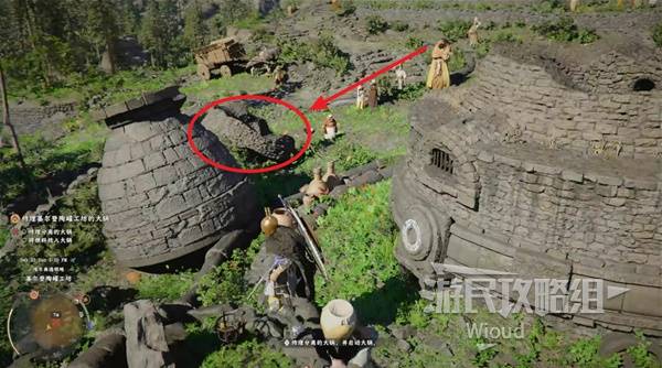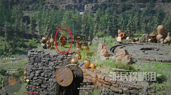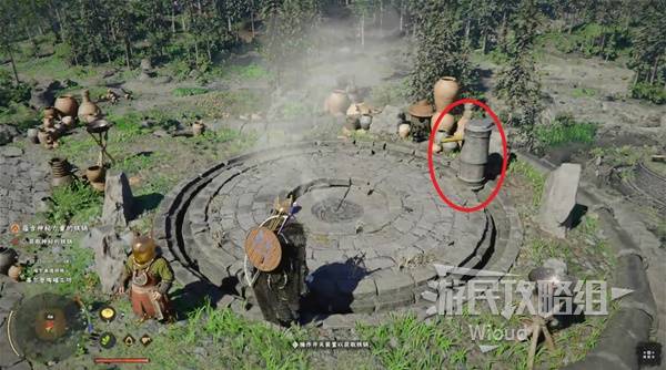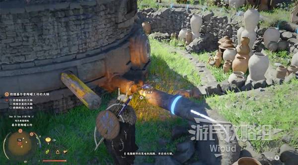 Head to the next marker, talk to the NPC, and follow the on-screen prompts to capture the iron ball in the cauldron. Quest complete.