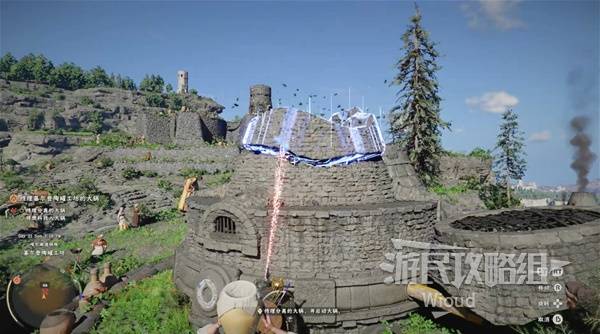 After all repairs, talk to the NPC and skip time when prompted. Push the railing β steam bursts from the center periodically. Push all the way to the end, and the cauldron launches into the air. Pick up the fallen cauldron.