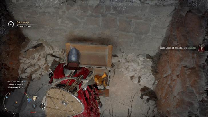 The Plate of the Shadows (also known as the Cold Dark Plate Armor set) is one of the strongest plate armor sets in Crimson Desert. All 5 pieces are found in the Hernand region — 4 can be collected from exploration chests, while the Helm only drops from defeating Beloth the Darksworn.