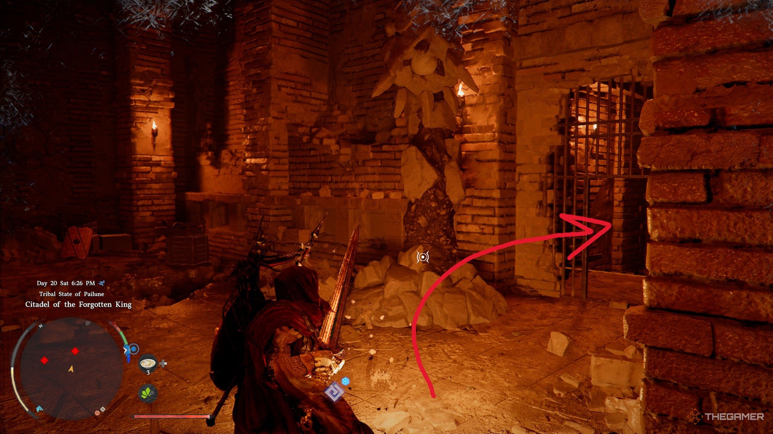 - Find the staircase at the north-center of the castle. Descend into the Citadel of the Forgotten King. Equip your lantern.