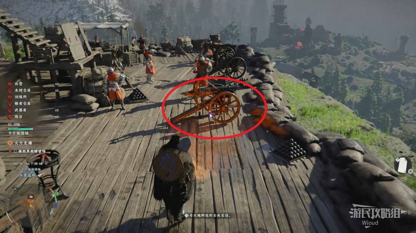 Head to the fire support point and speak with the soldier next to the cannon. Complete a QTE sequence to help repair it. Then operate the left cannon to destroy four enemy watchtowers β they'll be marked by red smoke. Move the cannon's aim to see the trajectory clearly, and fire directly at each tower structure.