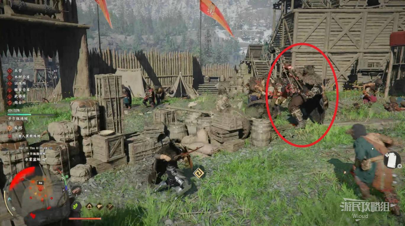 Speak with soldiers at the outer perimeter. Use your lantern to survey the area, then speak with the soldier marked with ! to continue. Enter the enemy camp at the marker and defeat the largest enemy wielding a hammer β the elite target.