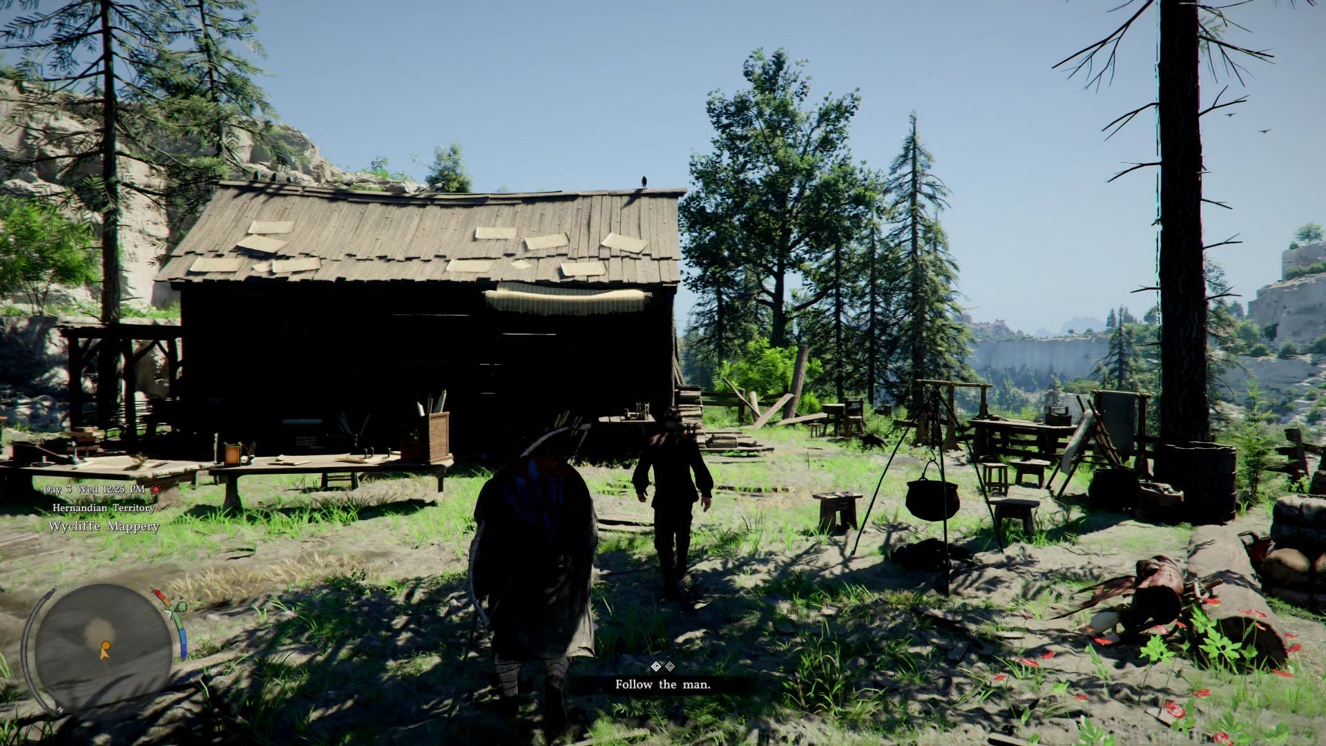 At the cabin, bandits attack β just two enemies, nothing you can't handle. After defeating them, Sebastian rewards you with an inventory expansion (+3 slots).