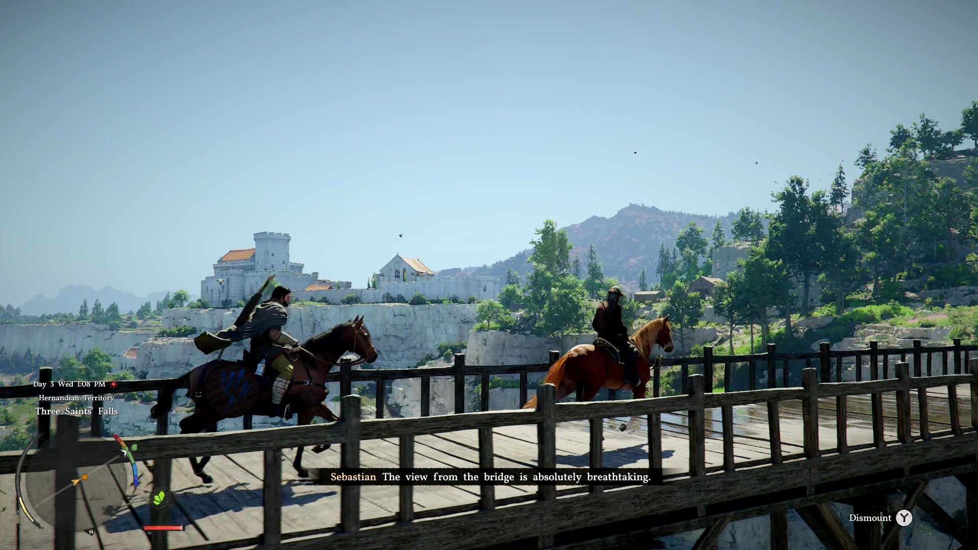 Sebastian offers to guide you to Hernand, the first major settlement. He even provides a horse β a Herspia, the standard breed found throughout Pywel.
