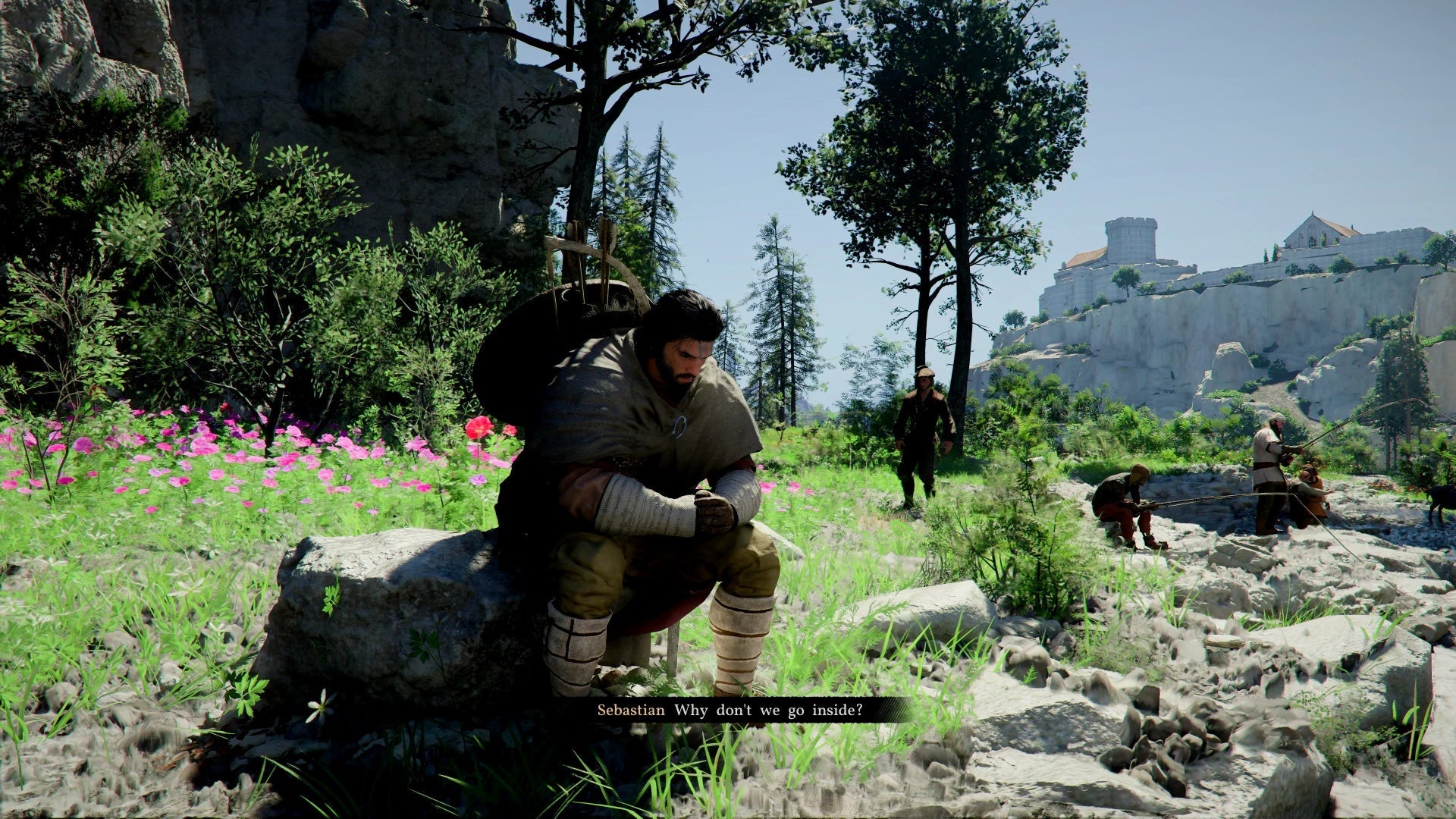 A stranger named Sebastian finds Kliff washed up by the river. He's the fisherman who pulled you from the water after the Greymanes' defeat. Follow him up the hill to his cabin.