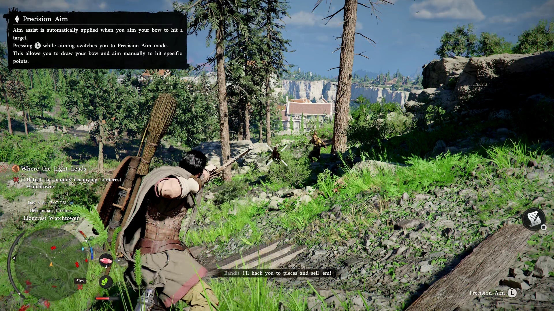 Após salvar todos os três, Myurdin, o líder dos Black Bears, aparece. Você verá um prompt "Aprendizado em Progresso" — o sistema de observação de Crimson Desert permite aprender habilidades e informações apenas observando. Fique atento a isso durante todo o jogo.