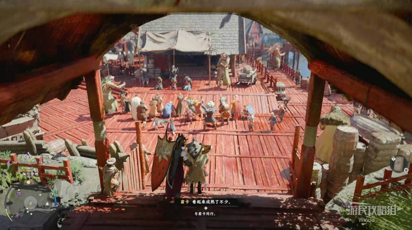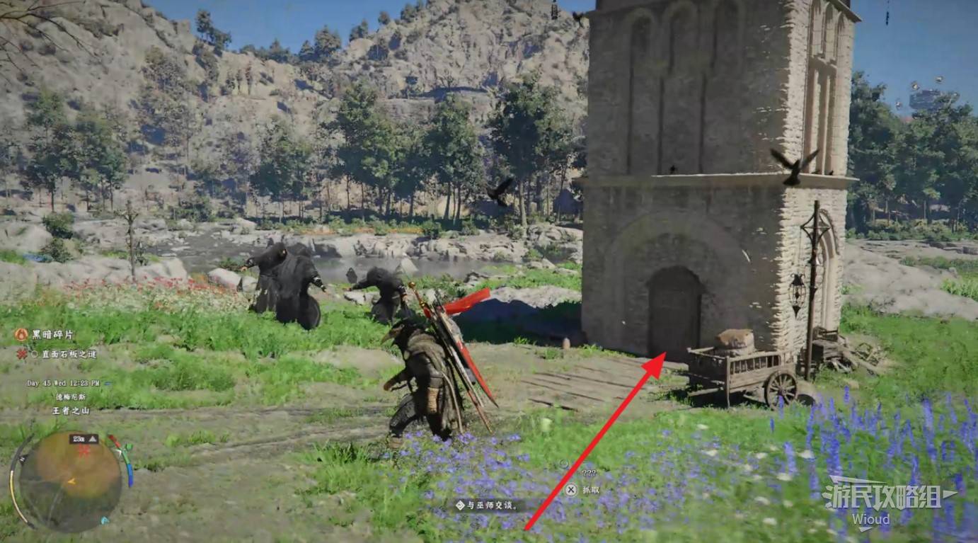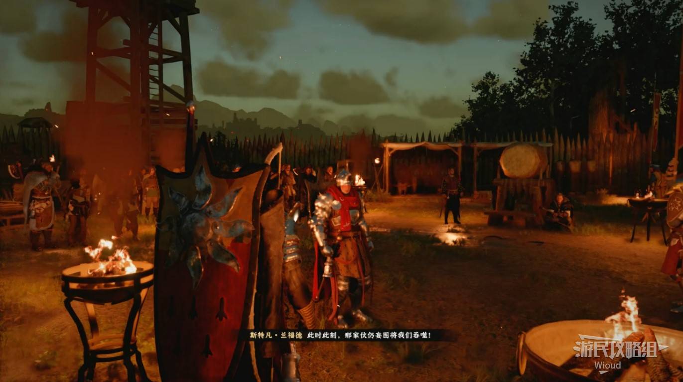 開場動畫結束後,朝火光方向下山,在一間小木屋與灰鬃團會合。