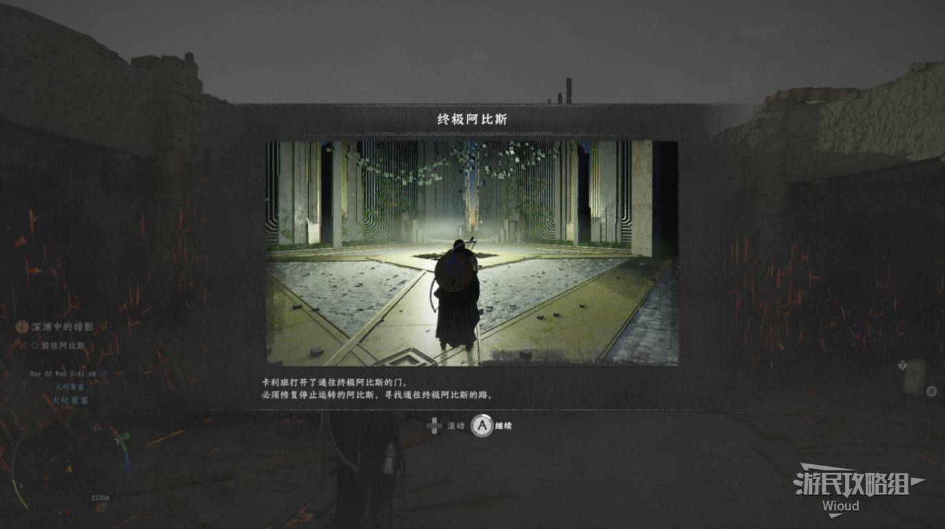 到達深淵本身的入口。在你踏入最終地下城前,會播放一段重要過場動畫。確保你的裝備完全升級,治療道具備足,再越過門檻。
