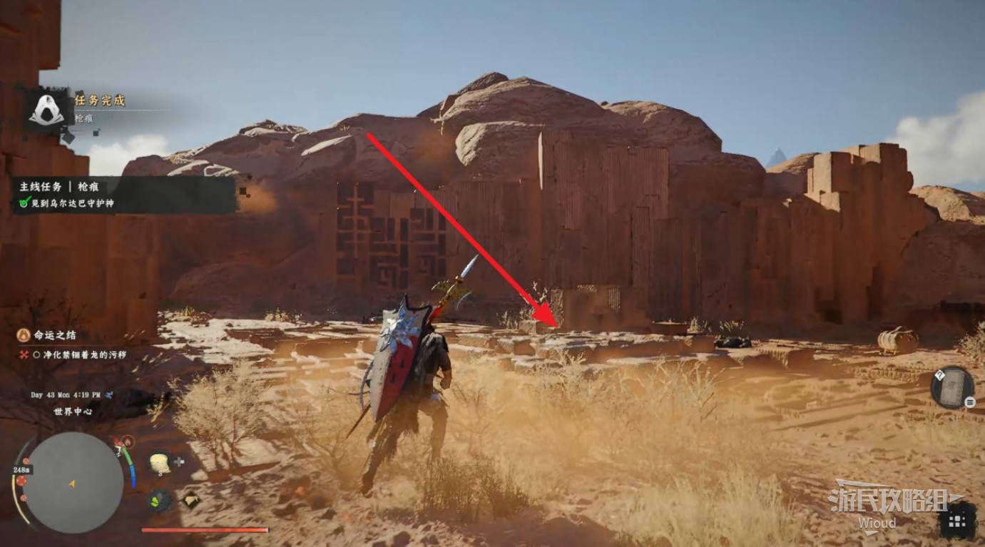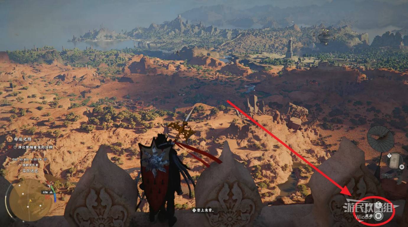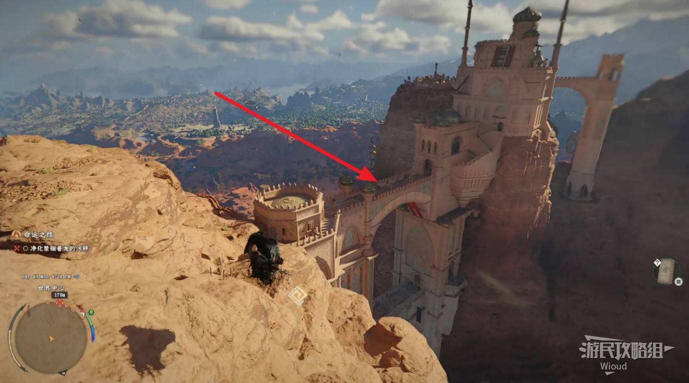 到達另一側後,翻越牆壁。只要你有體力,《紅色沙漠》幾乎可以攀爬任何表面。