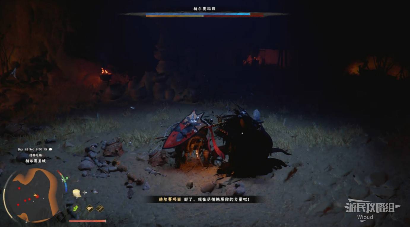 此戰依設計無法獲勝。盡情奮戰吧,但被擊倒時也別擔心。過場動畫結束後,你會被傳送到新的地點。