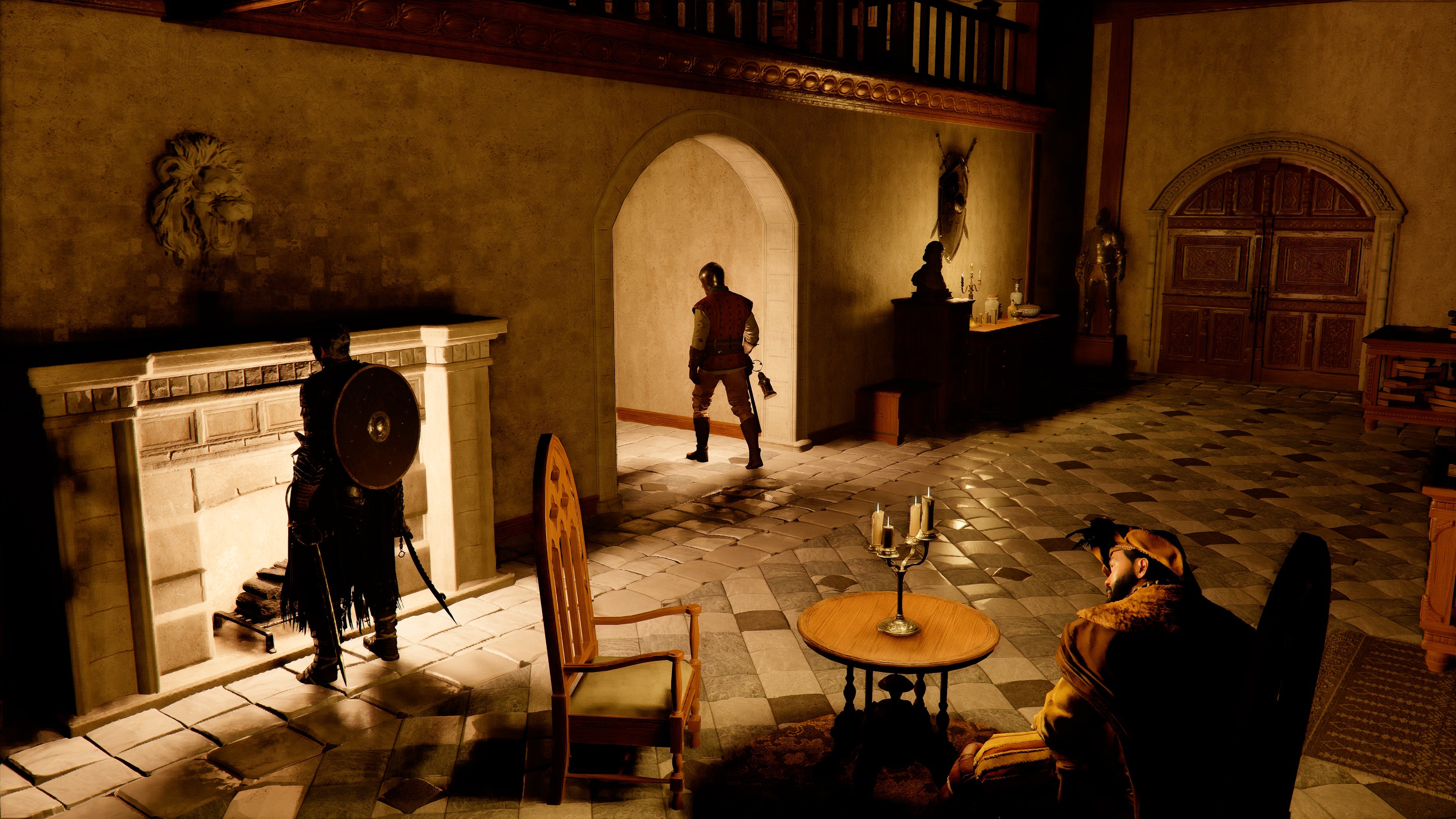 先完成布鲁娜的请求 - 如果您看到3个NPC站在壁炉前,说明您还没有完成支线任务“布鲁娜的请求”。先完成这个任务,那些NPC就会消失,只剩下2个守卫。
