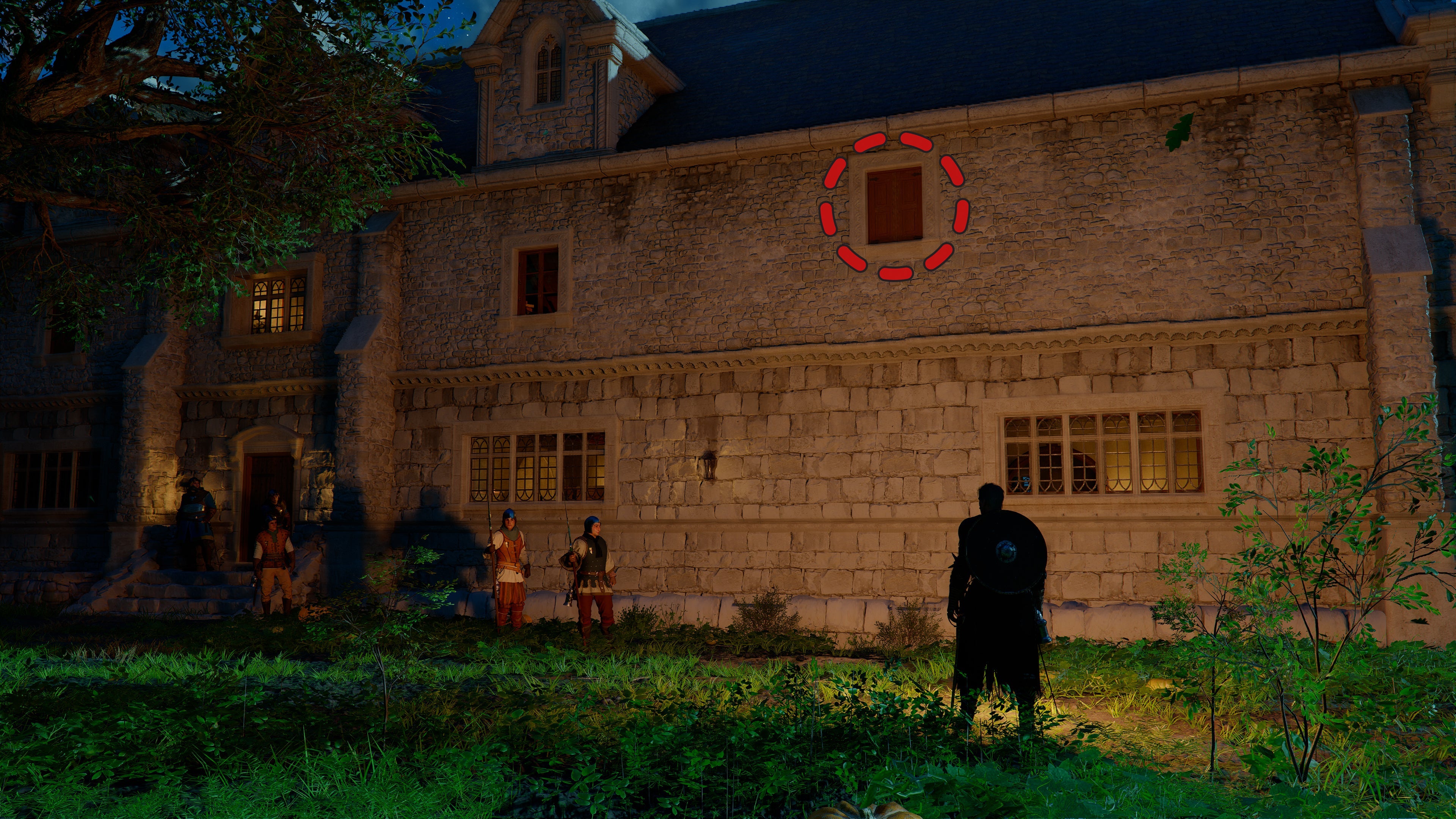 庄园是一座大型建筑,在地图上可以清晰看到,位于起始城市的北侧。前门有守卫,您无法正常进入。
