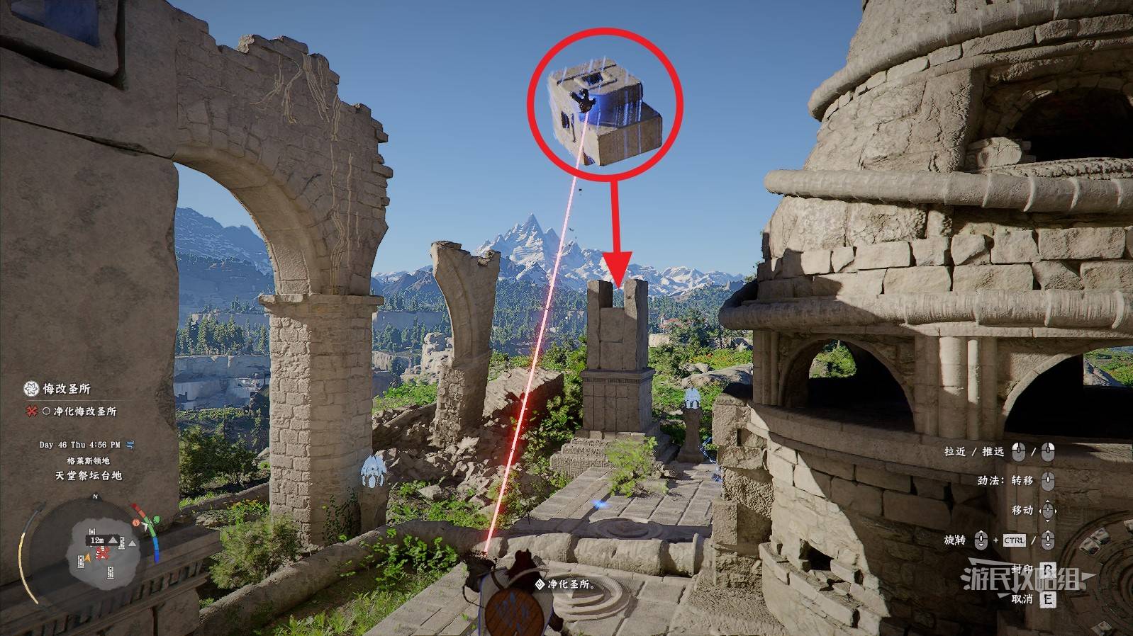 爬上积木顶部,然后跳起并使用空中劲法将其砸入到位。圣所随即得到净化。